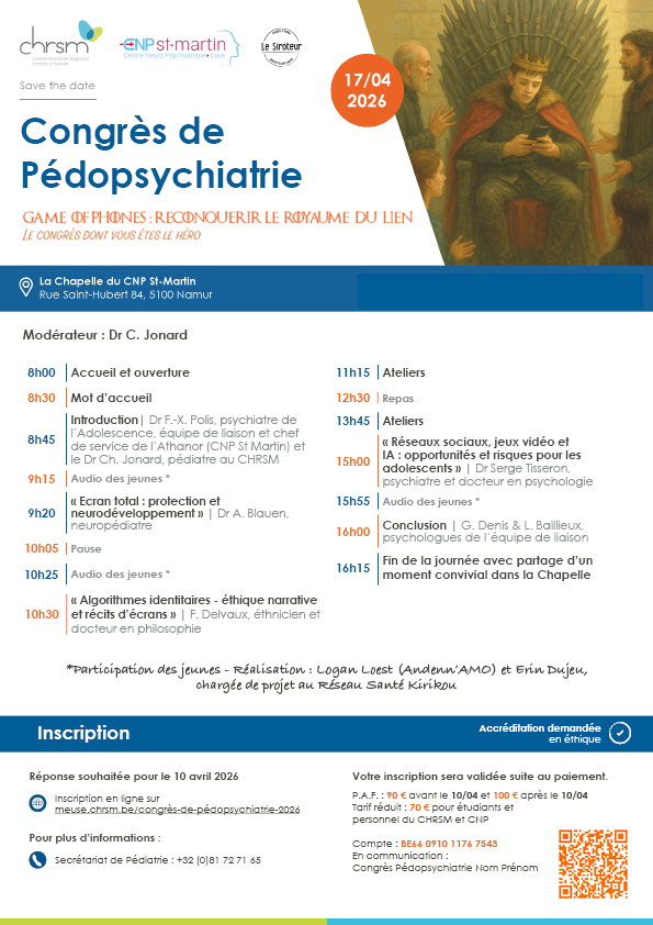 C’est avec plaisir que l’équipe de liaison : Okapi (Pédiatrie du CHRSM - site Meuse) et Athanor (CNP St-Martin) vous invite à la 5ème édition du Congrès de Pédopsychiatrie.